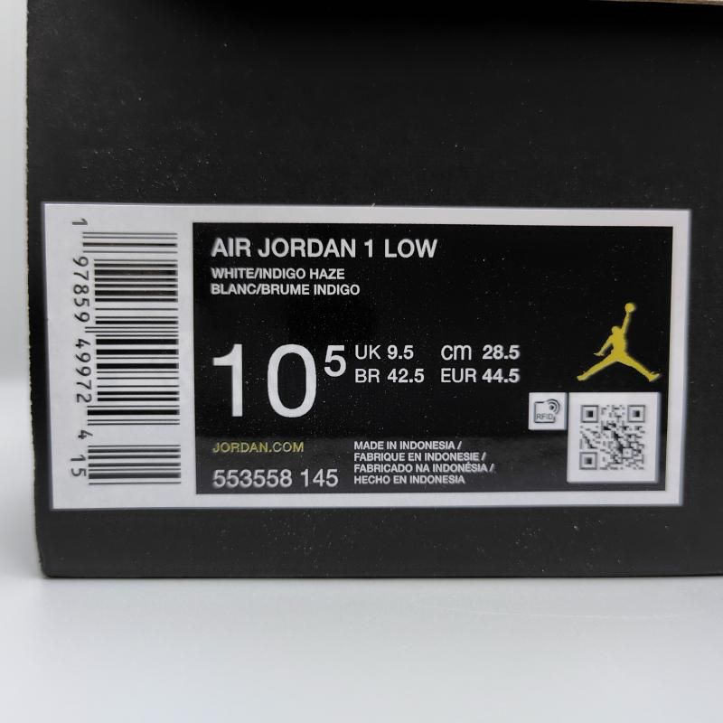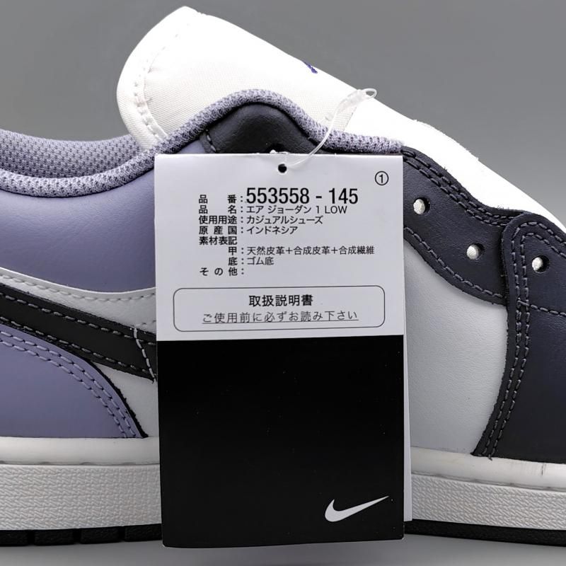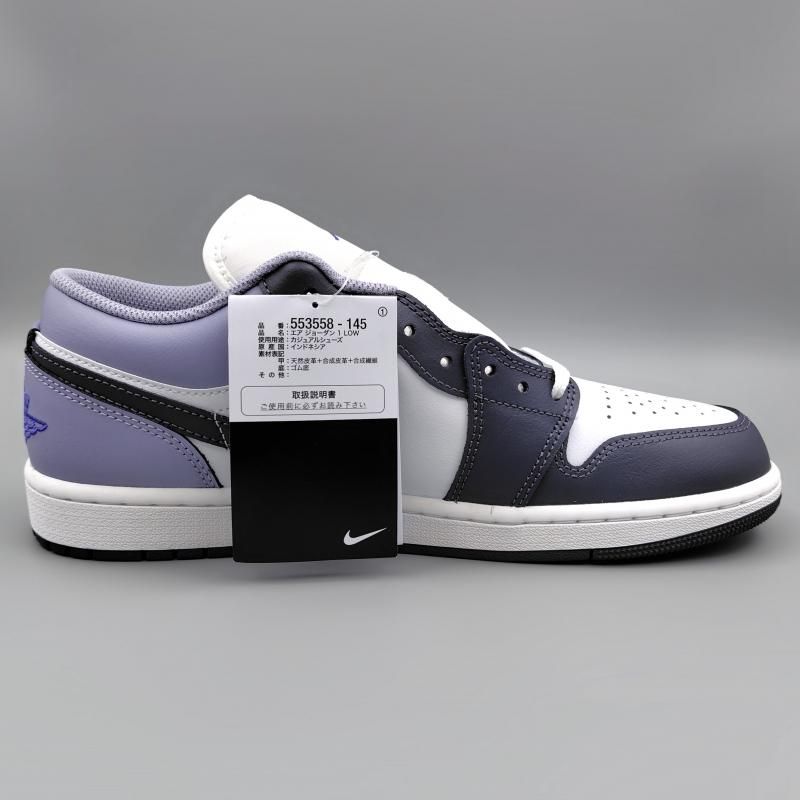 商品名:AIR JORDAN 1 LOW (エア ジョーダン 1 ロー) 品番:553558-145 サイズ:28.5cm カラー:ホワイト/ダークブルーグレー/パープルコメット/インディゴヘイズ 状態:新品 付属品:箱付 黒タグ付 製造年:2025年製 素材甲:天然皮革+合成皮革+合成繊維 素材底:ゴム底 使用途:カジュアルシューズ 区分:メンズシューズ 原産国:INDONESIA